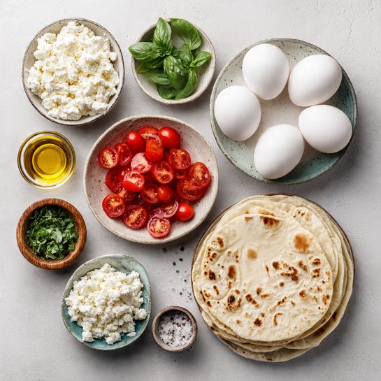 There’s so much going on in one bite — crispy tortilla, soft eggs, creamy feta, juicy tomatoes, and aromatic basil. The contrast between the toasty shell and the gooey center is what makes this dish so satisfying. The tomatoes burst with juice, while the feta and eggs melt together for a rich, creamy finish.