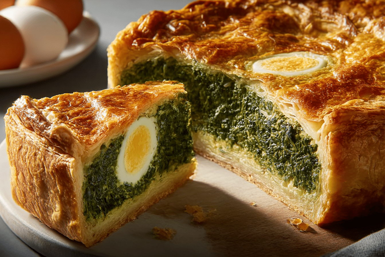 It starts with the rustle of pastry as you slice in—the layers cracking gently to reveal a mosaic of greens, creamy cheese, and, if you’re lucky, a golden-yolked egg nestled right in the center. Torta Pasqualina isn’t just a pie—it’s a celebration. A dish born from tradition, wrapped in flaky crust, and steeped in springtime joy.