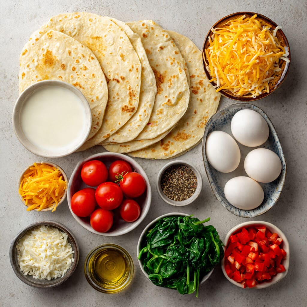 - Olive Oil: 1 tablespoon — for sautéing and brushing tortillas.
