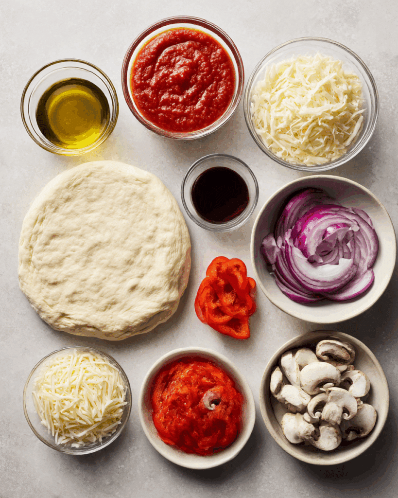 - Pizza Sauce: 1/2 cup – a tangy, herby tomato layer to set the stage.